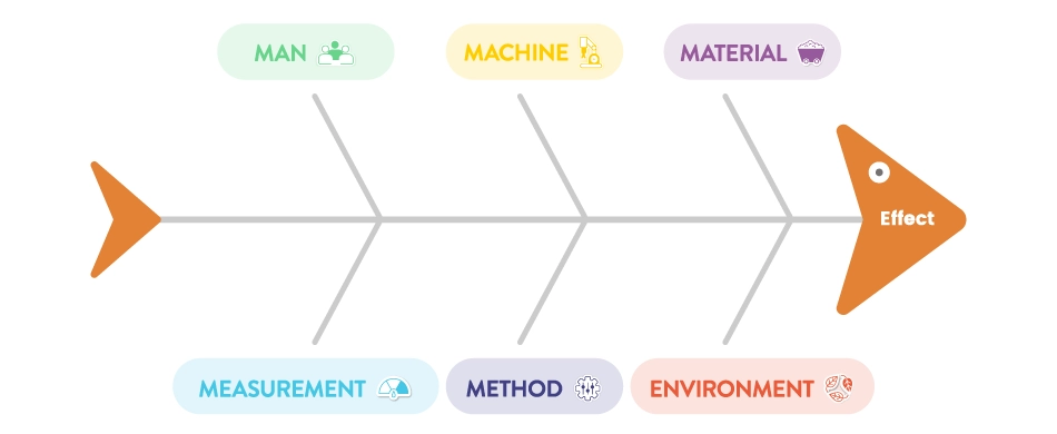 โดยปกติในเชิงการผลิตแล้ว เราจะมีการแตกแขนง แผนภูมิก้างปลา (Fishbone Diagram) ออกเป็น 6 ขาหลักๆ ประกอบด้วย