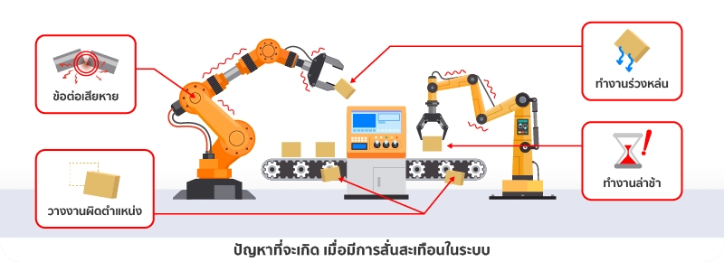 การสั่นสะเทือนในเครื่องจักรอัตโนมัติอาจเกิดจากปัจจัยต่างๆ เช่น ความแข็งแรงของโครงสร้างที่ไม่เพียงพอ ขาดวัสดุดูดซับแรงสั่นสะเทือนและแรงกระแทก โหลดที่ไม่สมดุล การวางแนวการเคลื่อนที่ไม่ตรง หรือการเร่งหรือชะลอความเร็วที่ไม่เหมาะสม โดยการสั่นสะเทือนเหล่านี้อาจส่งผลต่อความแม่นยำ ความน่าเชื่อถือ และประสิทธิภาพโดยรวมของอุปกรณ์ อีกทั้งยังส่งผลให้ลดทอนอายุการใช้งานของอุปกรณ์ต่างๆในเครื่องจักรลงอีกด้วย โดยเฉพาะจุดยึดต่างๆอาจจะมีการคลายตัวหรือแตกหักได้ ดังนั้นการแก้ปัญหาที่ทำให้เกิดการสั่นสะเทือนจึงมีความสำคัญเป็นอย่างมาก