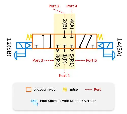 ส่วนประกอบของโซลินอยด์วาล์ว แบบ 5/3